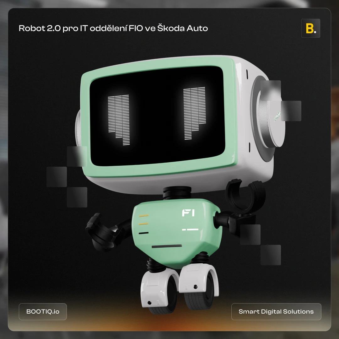 Robot vznikl v rámci projektu pro IT oddělení FIO ve Škoda Auto. I když spolupráce začala s jedním týmem, maskot a celá identita cílí na všech 9 týmů v rámci FI – tedy celého IT segmentu automobilky.