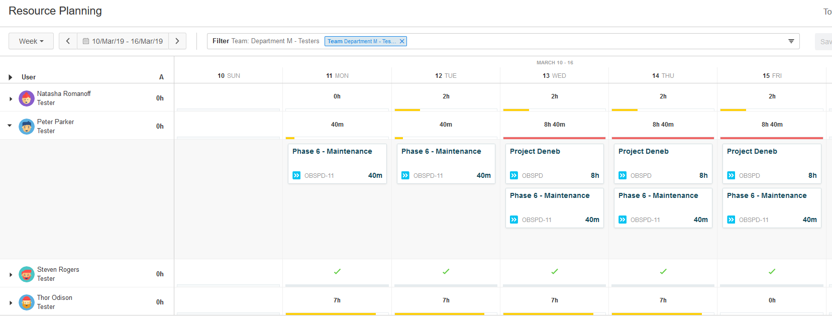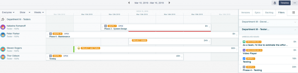 Dva rôzne pohľady na plánovanie tímu testerov v jednom a tom istom týždni.